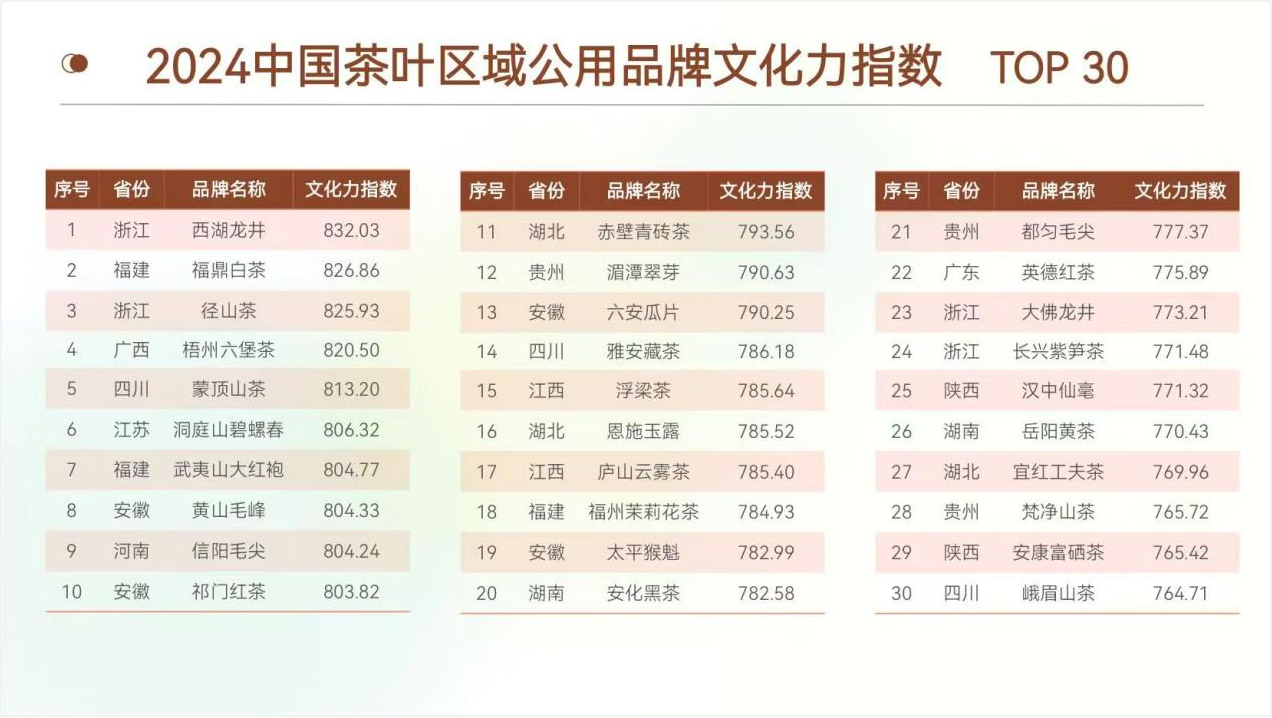 茗立潮头,西湖龙井荣登中国茶叶区域公用品牌文化力指数榜首