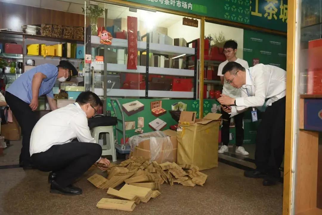6月2日,上海市市场监管局执法总队联合金山、闵行、松江、静安区局执法大队,出动执法人员110余人次,分20个行动小组,开展冒用“西湖龙井”地理标志商标专项执法行动。