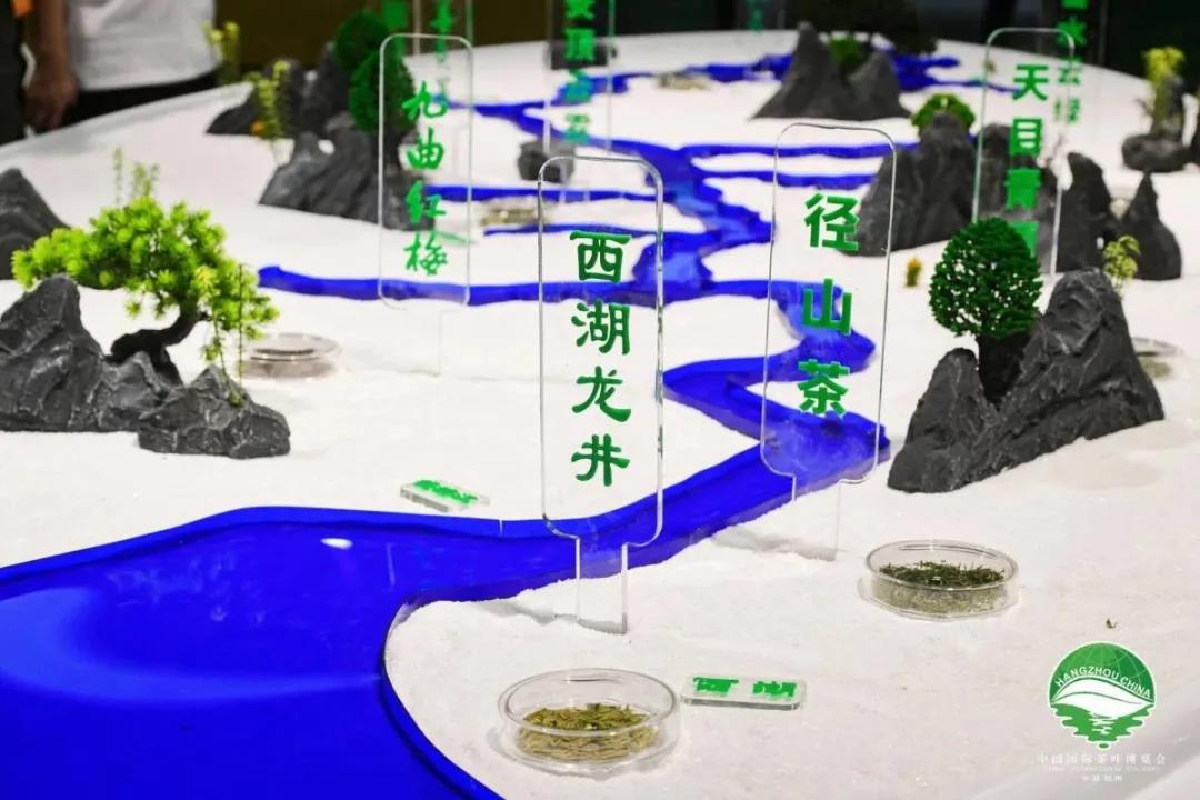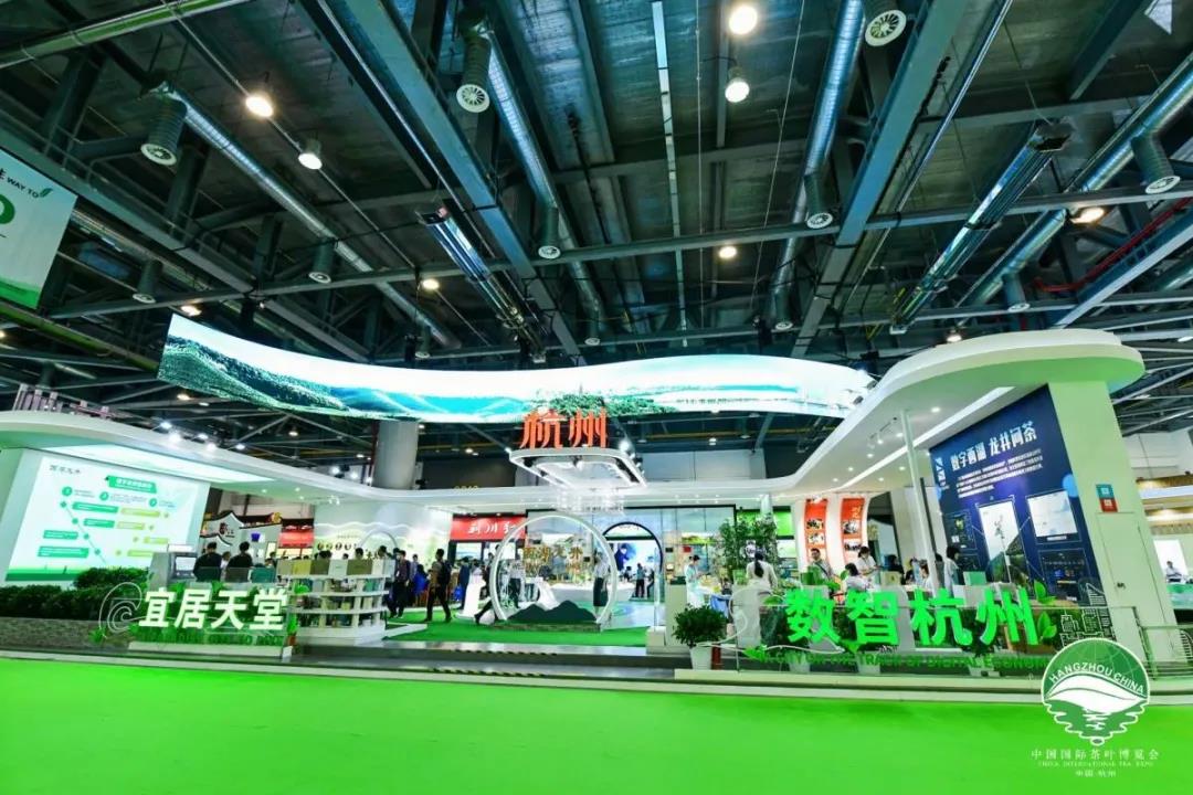 杭州馆以“数智杭州,宜居天堂”为主题,宣传展示杭州茶业发展成就和茶文化的深厚底蕴。展示形式上以“之”字屏模拟杭城“一江春水穿城过”形态贯穿整个展区,突出杭州茶产业“拥江发展”的新格局。展区内通过茶科技、茶文化、茶体验三大版块全面呈现在数字经济新浪潮下的茶产业发展,四面通透,辨识度高,现代化风格明显。积极融入国家“一带一路”战略,使以西湖龙井为代表的杭州茶走出中国,走向世界。展会期间,杭州馆再次成为全场亮点,观众争相拍照打卡,获得一致好评。