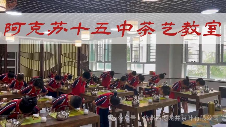 这间茶艺教室,是从杭州“搬”来的。援疆教师、阿克苏市第十五中学副校长叶娓作为杭州市第11期第1批援疆教师中的一员,提出了茶艺教室的方案。在和杭州市茶文化研究会取得联系后,杭州西湖茶叶有限公司董事长戚英杰第一个响应,并愿意为教室的所有开销“买单”。2023年5月,茶艺教室落成当天,远道而来的情谊,那扇茶文化之窗,向师生们徐徐打开!