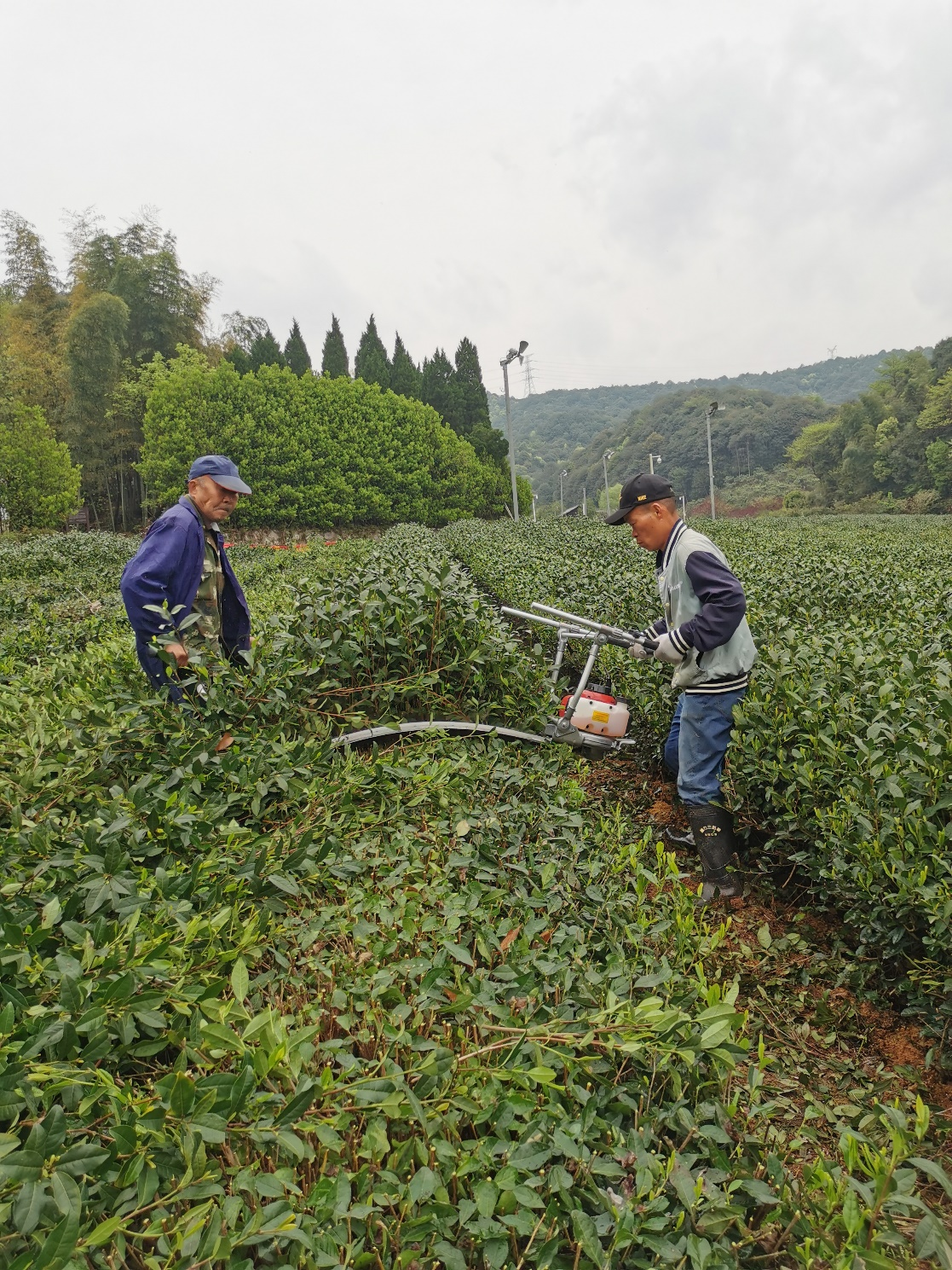 西湖龙井茶园春茶后管理包括施追肥和重修剪两个方面,操作顺序为先施肥再修剪。