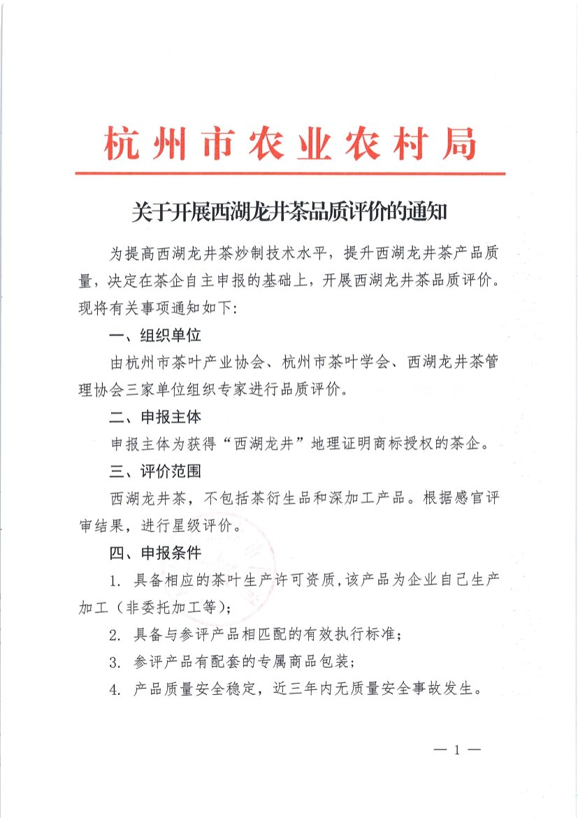关于开展2026年度“西湖龙井”地理标志证明商标许可使用申报的通知