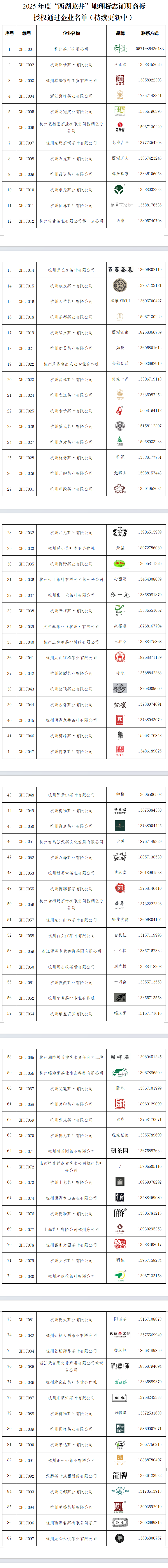 2025年度“西湖龙井”地理标志证明商标授权通过企业名单(2.13日持续更新中)